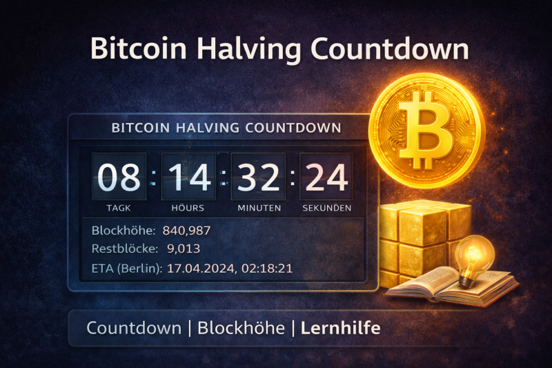 Passend zum Thema findest du in unseren Mini-Tools auch einen praktischen Bitcoin-Halving-Countdown