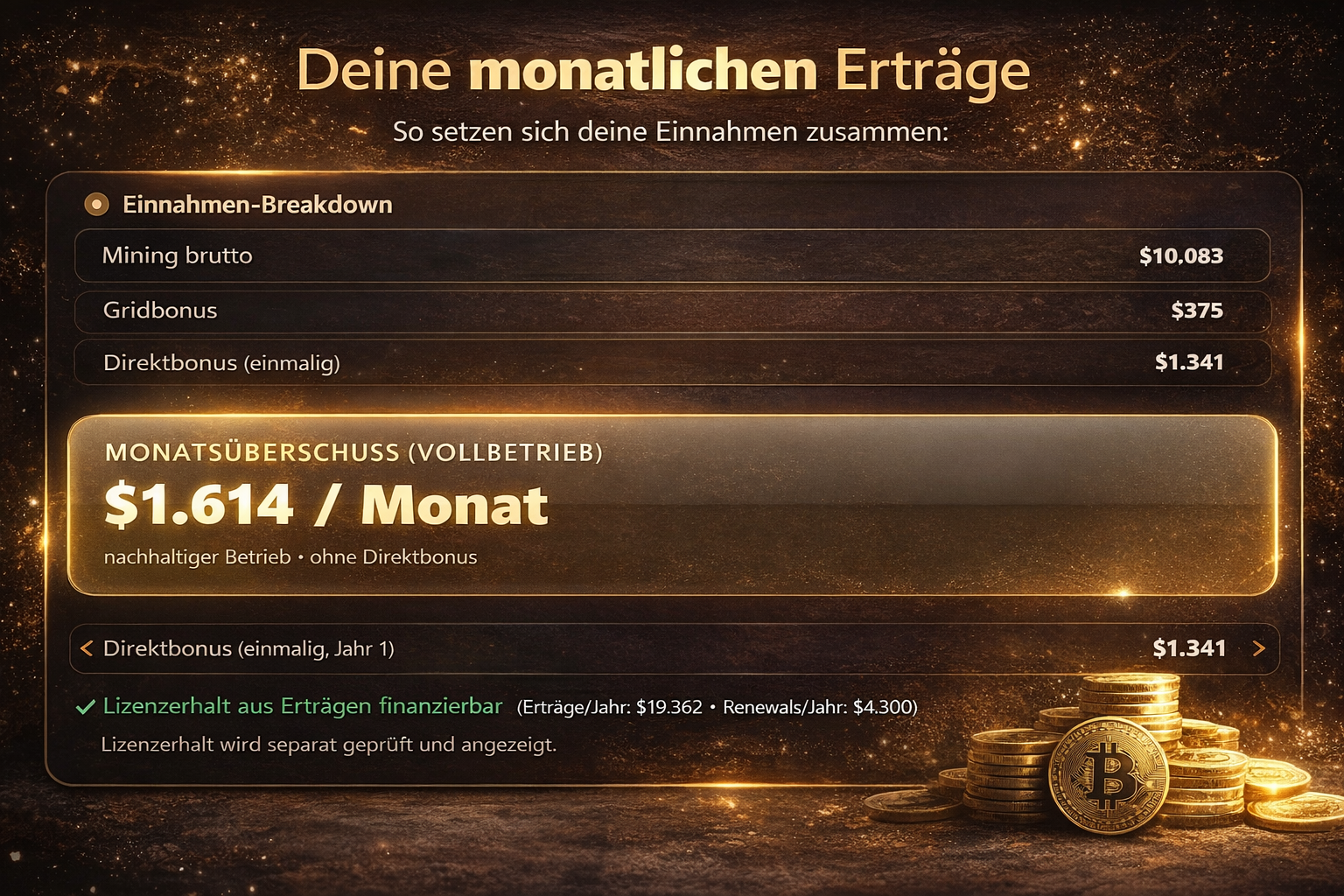 Gleichzeitig berücksichtigt die Struktur auch vertriebsseitige Effekte, sodass neben der Systemstabilität attraktive Bonusmechanismen integriert werden können.