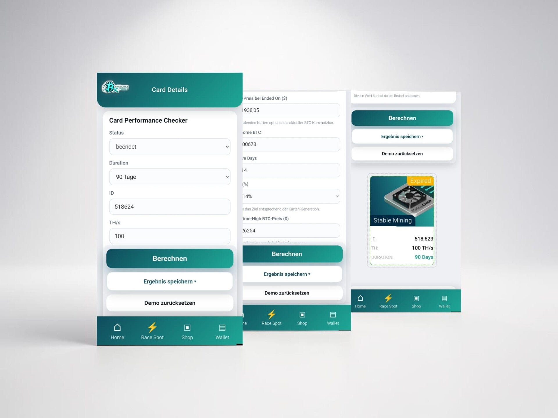 Gib die Daten deiner Karte aus der Mining-App ein.