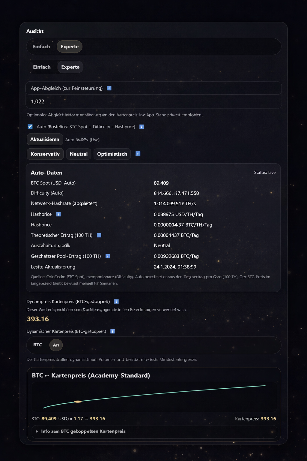 BTC gekoppelter Kartenpreis