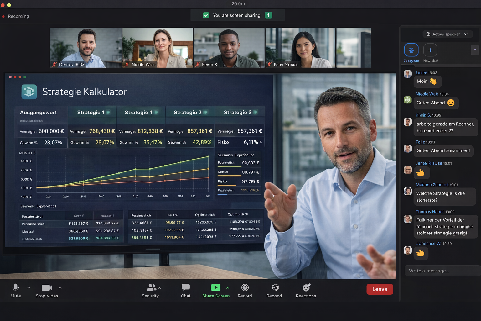 Mit einem Klick werden konservative und optimistische Szenarien sichtbar.